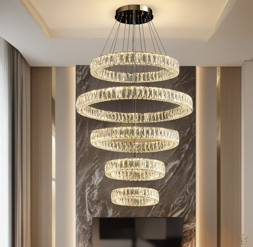 View full detailsAdd a striking centerpiece to your space with our Large Swirl Crystal Ring Chandelier, designed to deliver both brilliance and elegance to modern i...