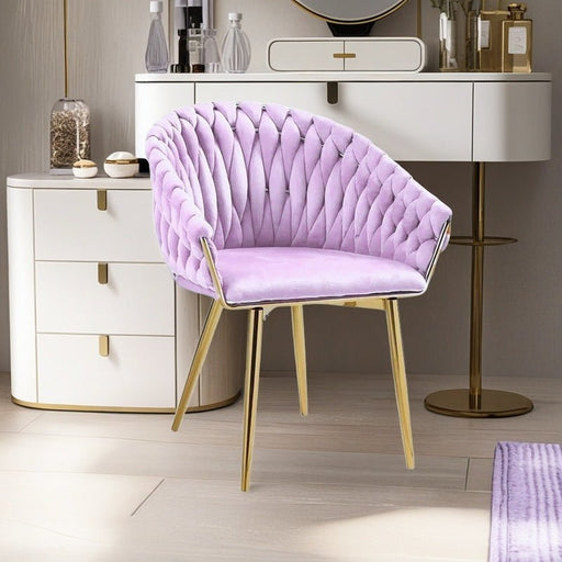 SERENITà Pink Modern Hand Weaving Dining Chairs,Velvet Upholstered Side Chairs with Gold Legs, Chic Vanity Chairs with Armrest, Accent Chair for Dining Room, and Cafe Set of 2