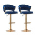 SERENITà Blue Velvet Padded Golden Round Base Barstools Chairs x 2