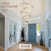 - Moderate Size: The size of high pendant lamp is moderate, and it will not occupy too much space. Round size: 100+80+60+40+30cm, base diameter 30cm, embedded 28cm, height 4cm, Gold pendant lamp, cable length adjustable 200cm meters.