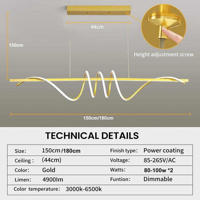 BAMDECOR A202 Modern LED Linear Pendant Lights with Dimmable LED (150/180cm-Gold)