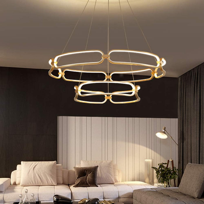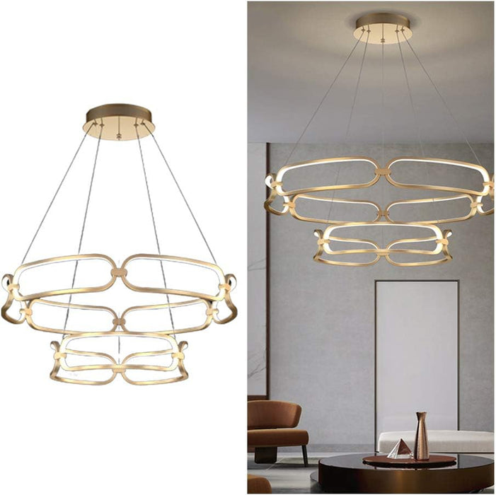 BAMDECOR A209 Colette Ceiling Chandelier Led Modern Circular Art Aluminum Light Fixture for Living Room Bedroom Indoor Decor(2 Rings)