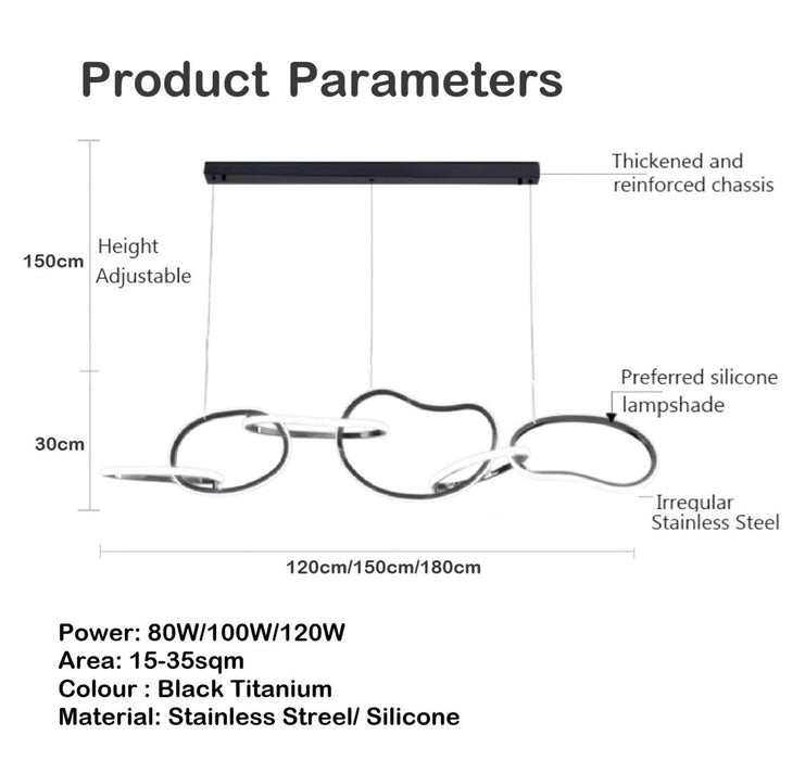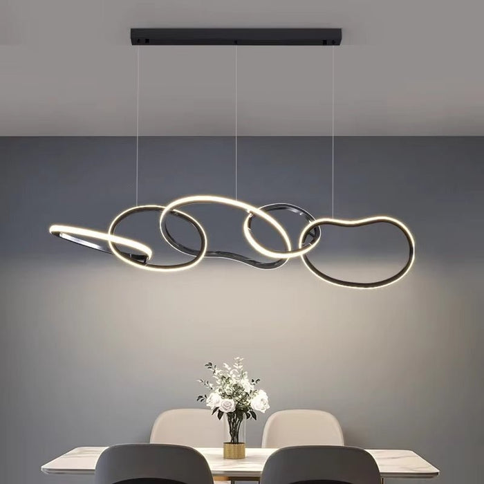 - Modern Irregular Ring Pendant Light: The contemporary pendant light consists of 5 rings. The unique irregular interlocking ring design is full of modern and avant-garde style.