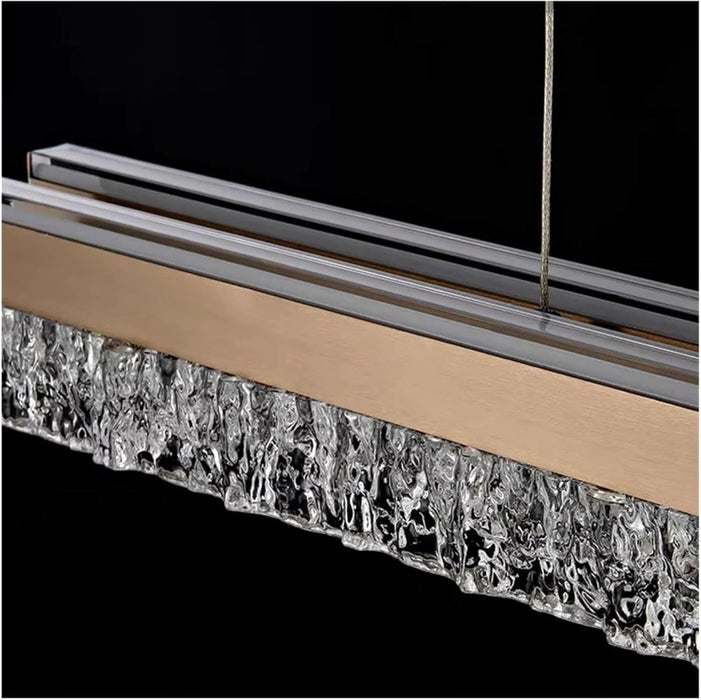 - This stunning piece of minimalist pendant lighting combines sleek lines and modern aesthetics, making it a perfect fit for contemporary interiors. Made of high-quality acrylic, the chandelier offers a soft, diffused light that enhances your dining experience while adding a touch of elegance to your space.