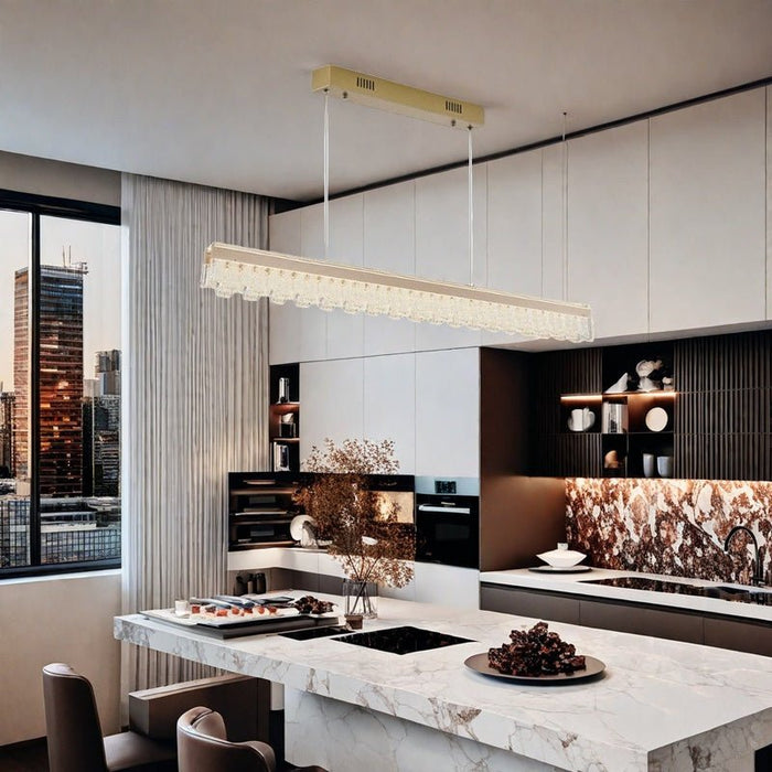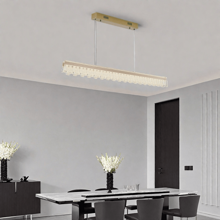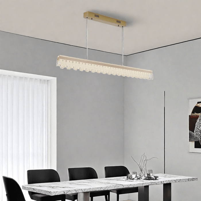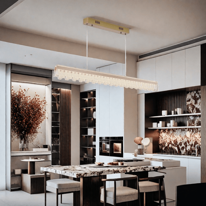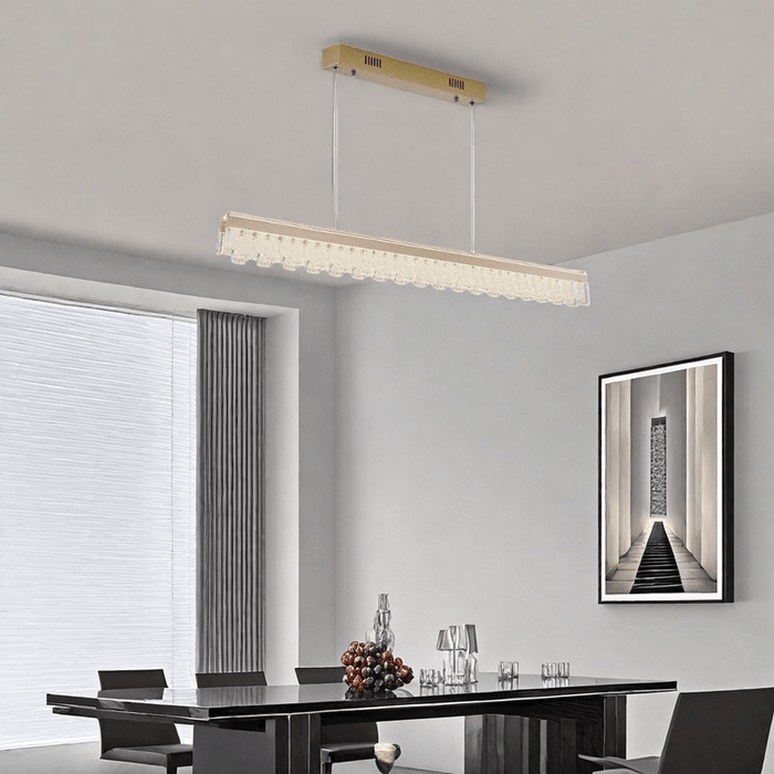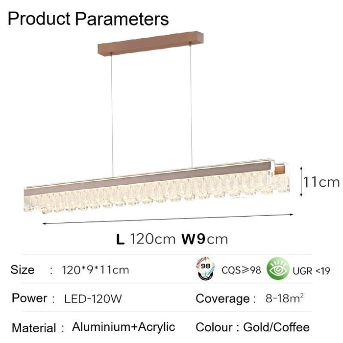 - Elevate your home decor with the Nordic Long Dimmable Acrylic Chandelier, designed specifically for kitchens, cafes, and dining tables.