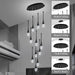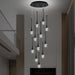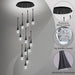 BAMDECOR LT08 is a Modern Multi-Pendant Spiral Chandelier featuring elegant, elongated "raindrop" or "teardrop" crystal elements. Suspended at varying heights from a central canopy, the warm LED lights create a cascading glow that mimics falling water, making it an ideal statement piece for high-ceiling foyers, grand entryways, or spiral staircases.