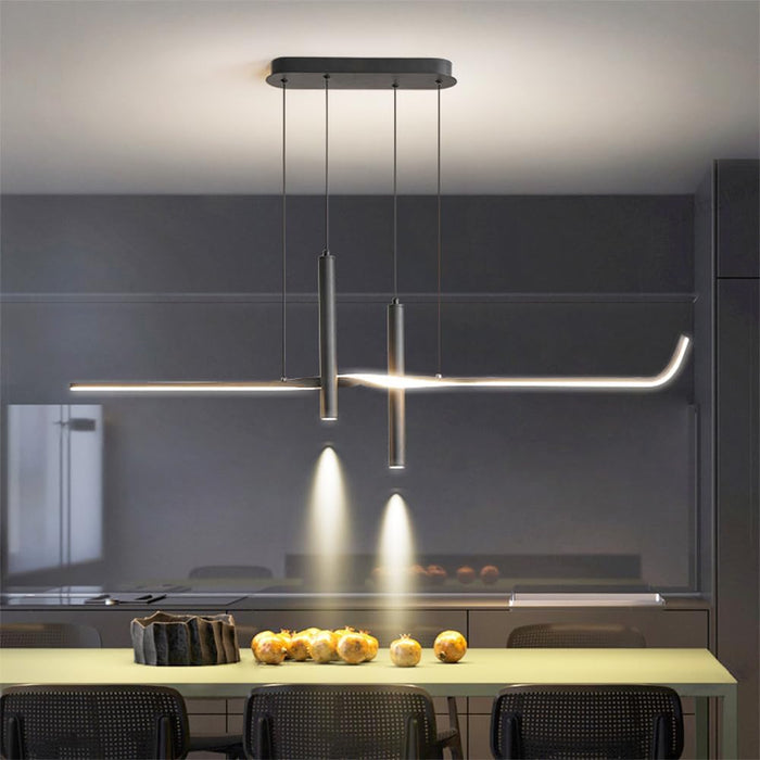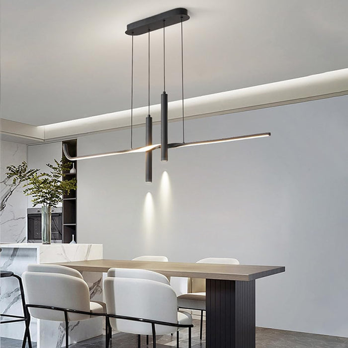 Upgrade your dining room, bar, or living room with this sleek and modern linear LED pendant light. Featuring a segmented straight-line design and advanced nano light guide technology, this light offers high-temperature resistance, anti-aging properties, and exceptional light transmission with uniform illumination. The energy-saving LED light source provides high brightness, true-to-life color rendering, and eye protection, making it ideal for any setting. This durable fixture is crafted with precision, ensuring long-lasting use, and its strong load-bearing capacity makes it suitable for both ceiling and integrated ceiling installations. Equipped with a remote control for step less dimming and easy 3-color lighting adjustments, it offers unparalleled convenience and versatility.